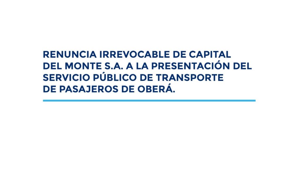 Renuncia irrevocable de Capital del Monte S.A. a la prestación del servicio público de transporte de pasajeros de Oberá