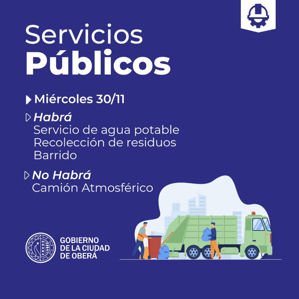 Con motivo del asueto administrativo por el «Día de la Bandera de Misiones», no se realizará el servicio de camión atmosférico. Trabajarán normalmente la recolección de residuos, distribución de agua potable y barrido.