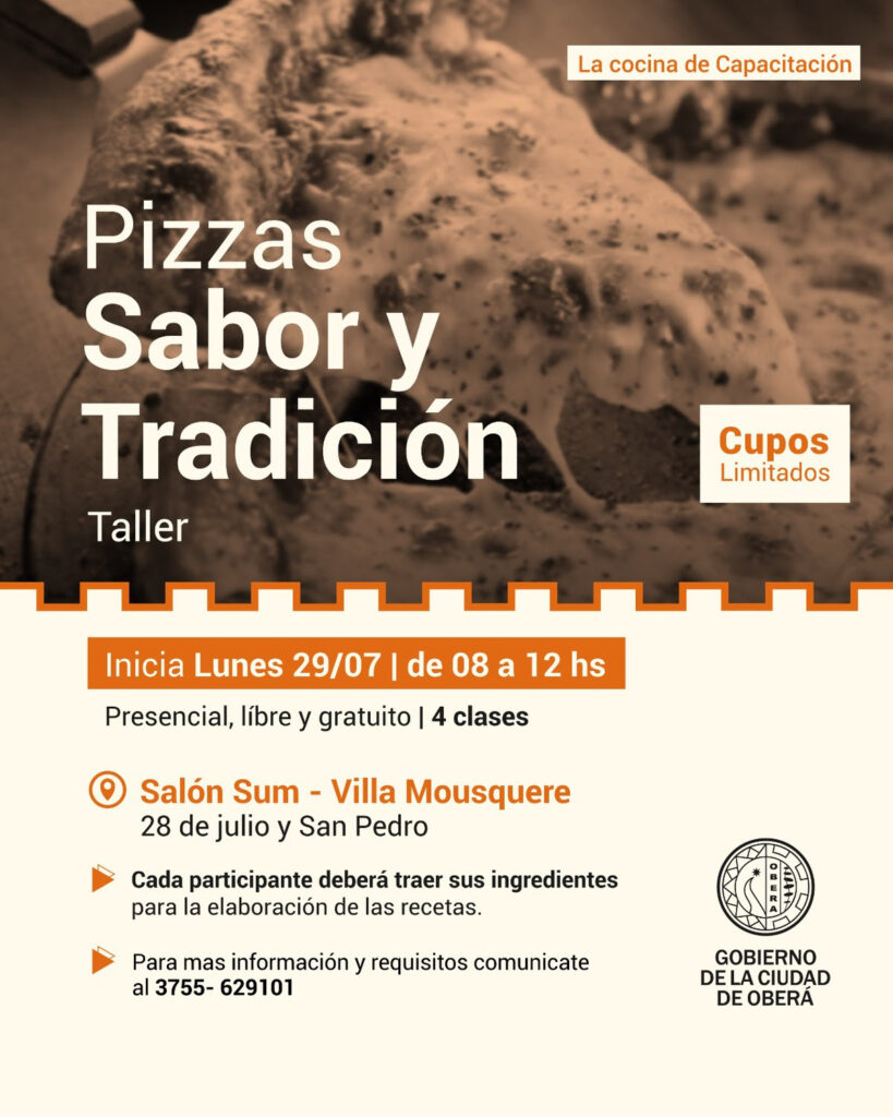 Serán 4 clases consecutivas para elaborar pizzas desde cero, está destinado al público general y gratuito, la modalidad es presencial, empieza el 29 de julio en el Salón de Usos Múltiples del barrio Mousquere. El objetivo principal es aprender a hacer pizzas desde cero, desde la preparación de la masa hasta el horneado, y disfrutar […]