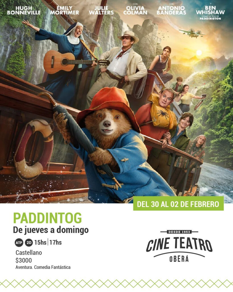 El jueves 30 se abren las puertas del Cine Teatro Oberá, con nueva cartelera, en diferentes horarios y será hasta el domingo 2 de febrero. Esta semana se proyectará “Paddington», una película de animación, comedia y aventuras. La historia cuenta que Paddington y la familia Brown visitan a la tía Lucy en Perú, pero un […]
