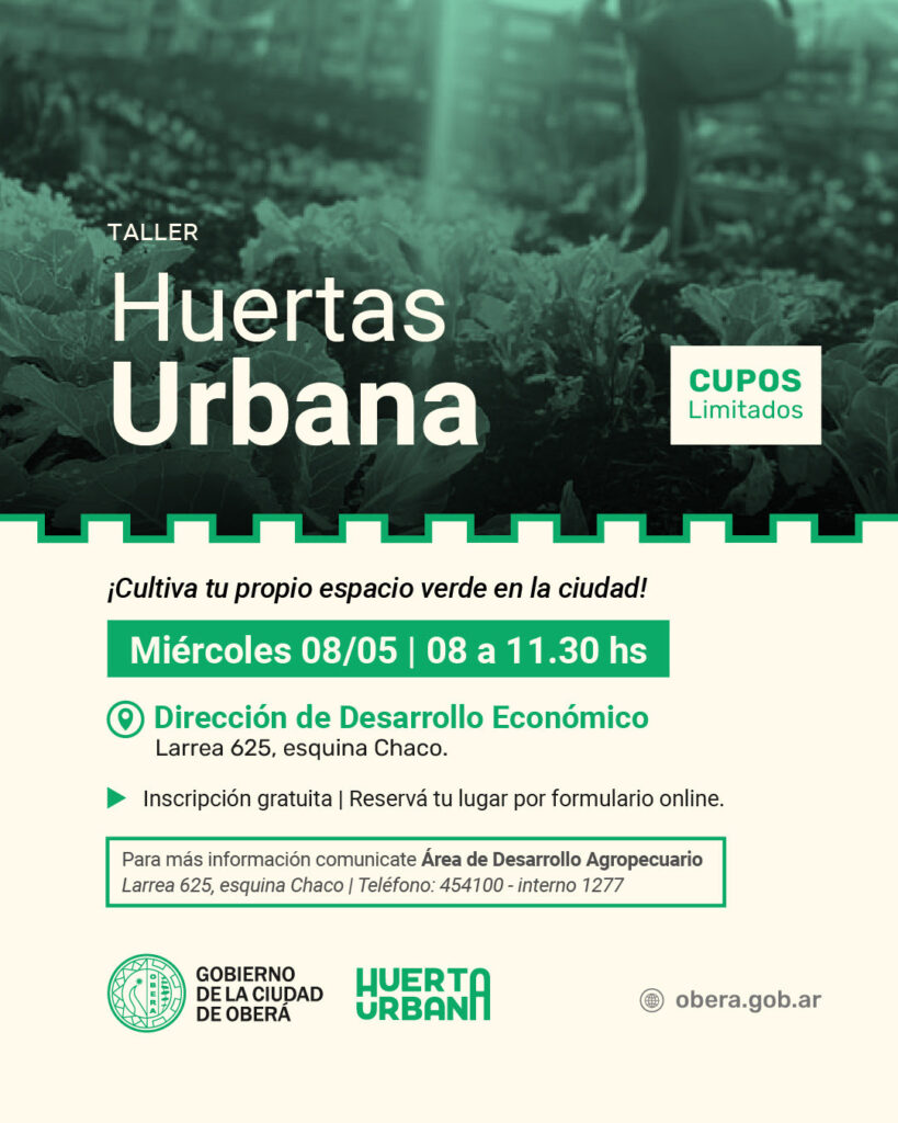 La Dirección de Desarrollo Económico invita a la comunidad a participar del Taller Práctico de Huertas Urbanas, una propuesta dirigida a quienes deseen iniciarse en la creación y cuidado de espacios de cultivo en entornos urbanos. Este taller tiene como objetivo promover hábitos sostenibles, el acceso a alimentos frescos y saludables, y el trabajo colaborativo […]