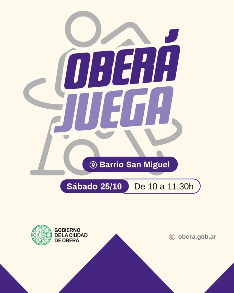 En el marco de las acciones que impulsa el Departamento de Deporte Barrial del Gobierno de la Ciudad de Oberá, este sábado 25 de octubre se desarrollarán diversas propuestas recreativas destinadas a fomentar la actividad física, la inclusión y la participación comunitaria. En el Barrio Caballeriza, a partir de las 08:30 horas, se realizará una […]