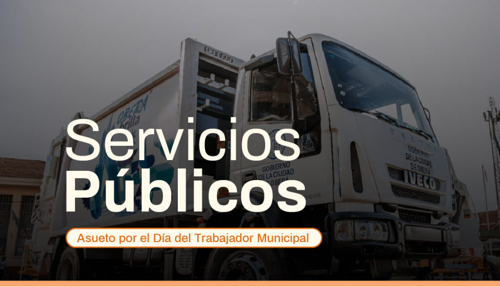 Desde el Gobierno de la Ciudad de Oberá, informan sobre los servicios que no se brindarán el viernes 7 de noviembre, en el marco del asueto administrativo por ser el Día del Trabajador Municipal. No habrá servicio de: