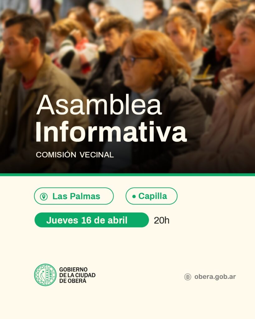 El Gobierno de la Ciudad de Oberá convoca a los vecinos de los barrios Villa Ruff y Las Palmas a participar de las asambleas informativas sobre el proceso de elecciones para la conformación de autoridades de las Comisiones Vecinales.