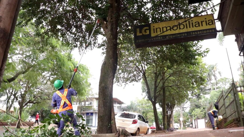 Las tareas de poda incluyen distintos tipos: despeje, correctivas y de formación. A pesar de las inclemencias climáticas, los trabajos en las primeras zonas, como la Avenida Libertad y el sector ubicado en la Calle Chaco, han avanzado de manera satisfactoria.