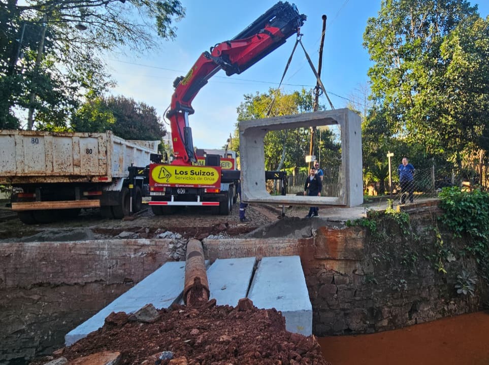 El Gobierno de la Ciudad de Oberá, a través de la Dirección de Obras e Infraestructura Urbana, continúa con los trabajos de reconstrucción del puente ubicado sobre calle Paraguay.