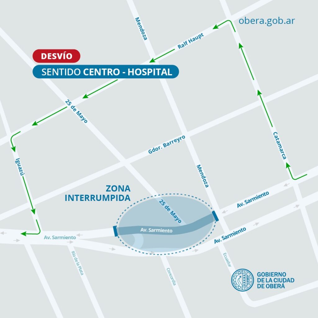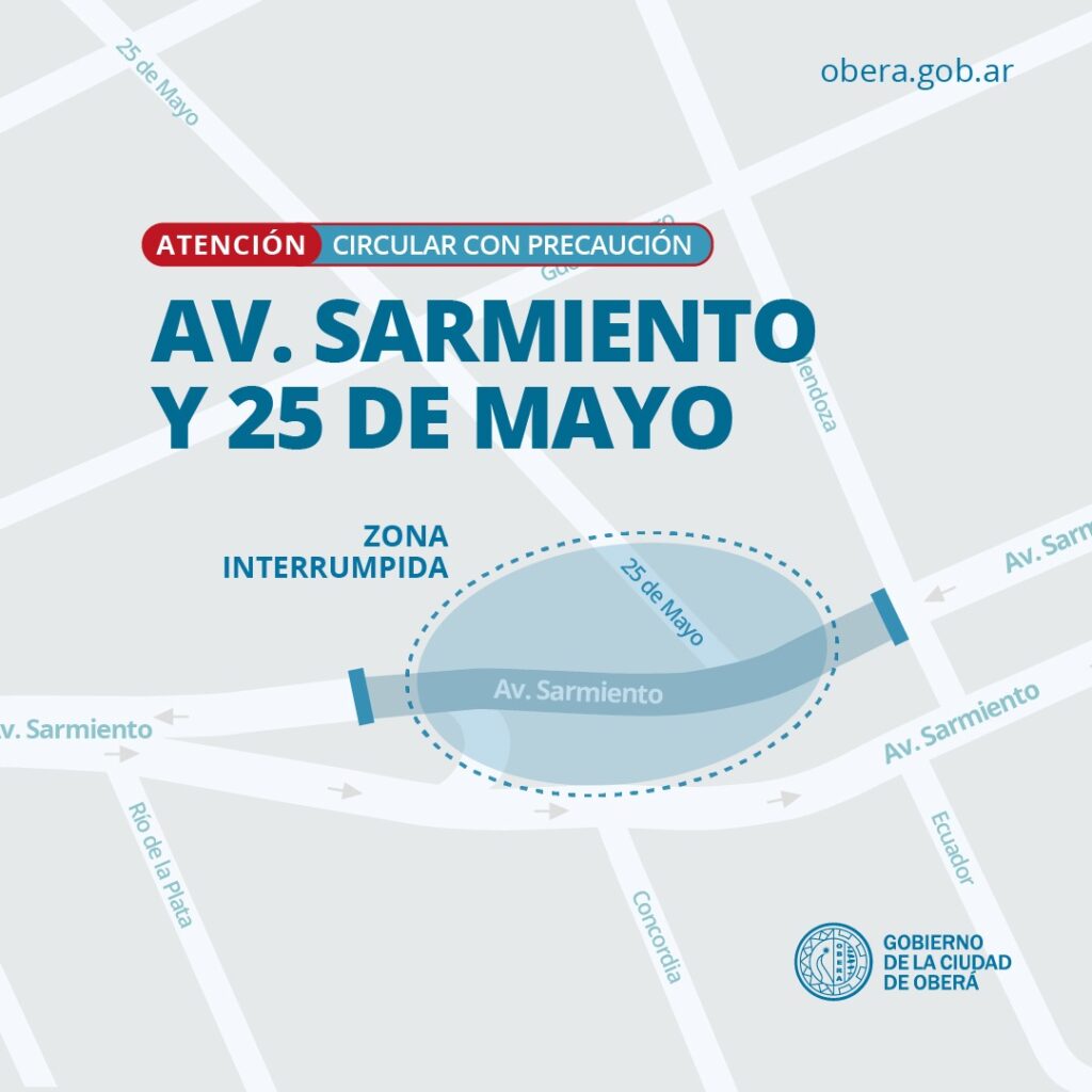 El Gobierno de la Ciudad de Oberá iniciará una importante obra de reconstrucción en la zona de avenida Sarmiento y calle 25 de Mayo. Las obras se desarrollarán de 18hs hasta la medianoche de este jueves.