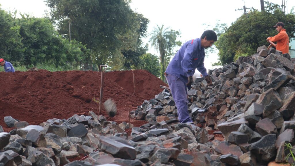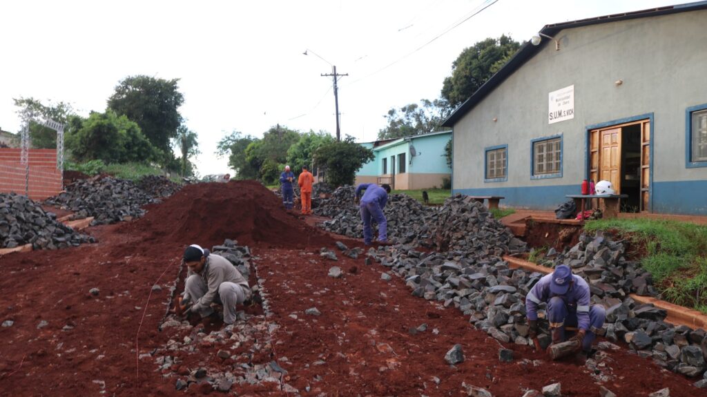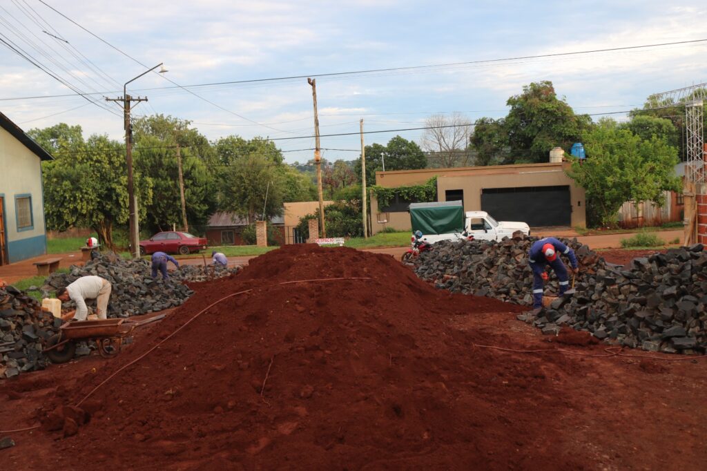 Actualmente se ejecuta la construcción de la segunda cuadra del empedrado, para completar el trabajo que se empezó con el cordón cuneta el año pasado.