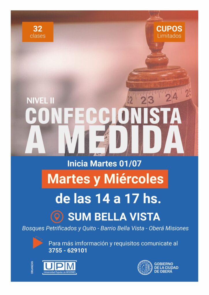 El Gobierno de la ciudad de Oberá en conjunto con la Universidad Popular de Misiones, ofrece un curso de formación profesional en Confeccionista a Medida Nivel II.