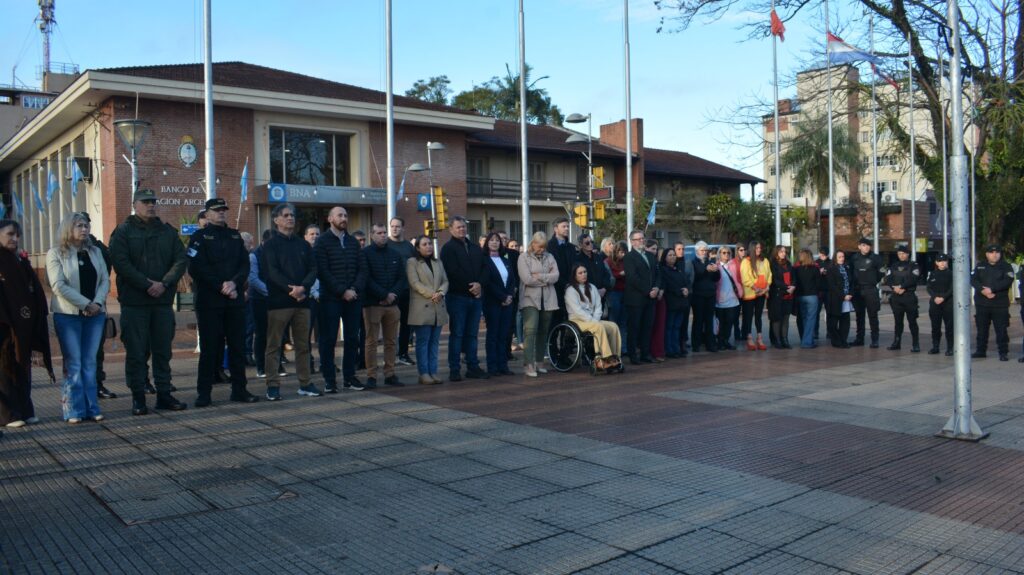 Participaron representantes del Gobierno de la Ciudad de Oberá, del Legislativo Provincial, Concejo Deliberante, instituciones intermedias, docentes, fuerza de seguridad, representantes de colectividades y Veteranos de la guerra de Malvinas.