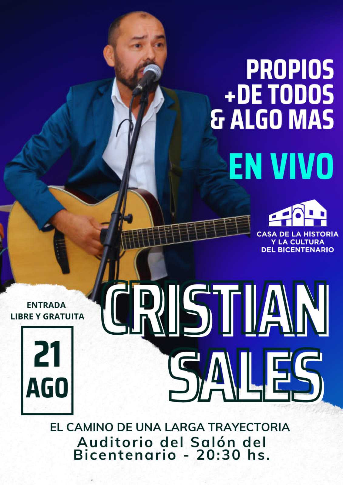 El evento tendrá lugar en el Auditorio Cacique Oberá de la Casa de la Historia y la Cultura del Bicentenario, ubicado en la intersección de avenida José Ingenieros y Larrea.