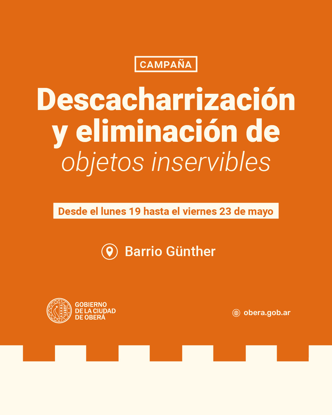 El Gobierno de la Ciudad de Oberá continúa trabajando en la prevención de criaderos del mosquito transmisor del dengue. Esta semana, la campaña de descacharrización es en el barrio Günther.