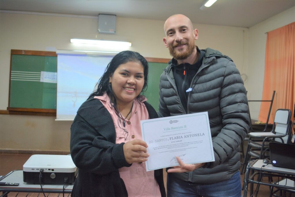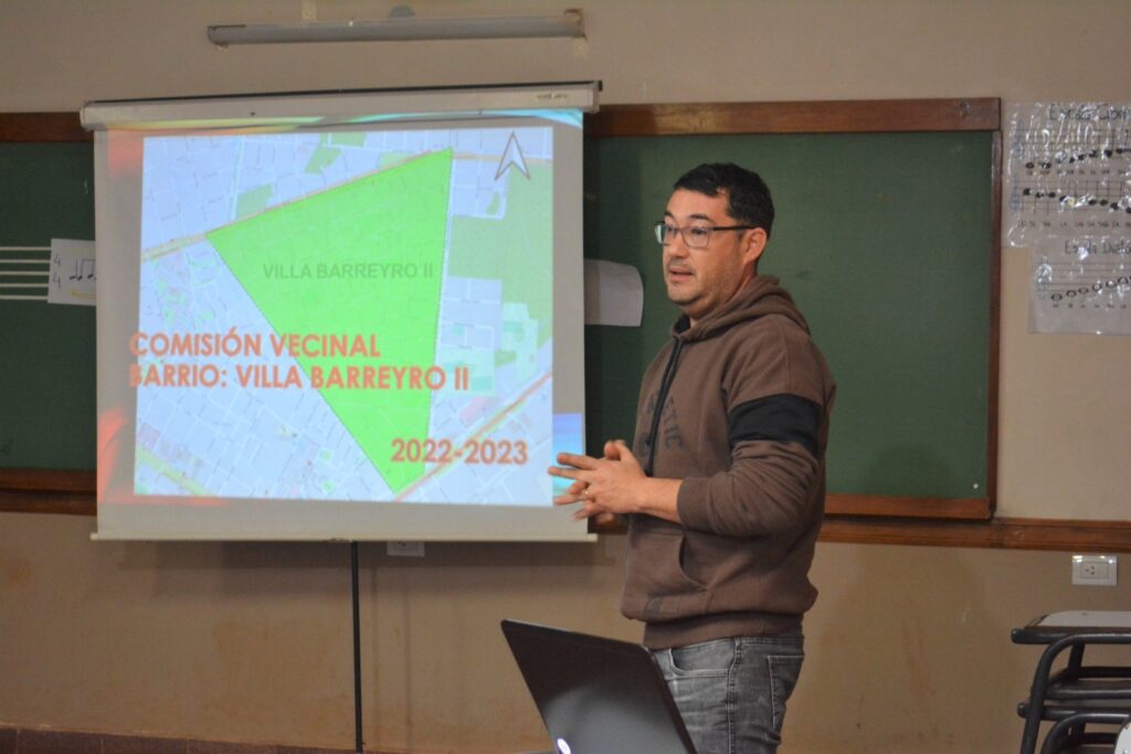 El pasado viernes 24 de mayo, se llevó a cabo un importante encuentro en las instalaciones del BOP N° 105, donde los vecinos del Barrio Villa Barreyro 2 se reunieron para presenciar la entrega de diplomas a las nuevas autoridades que liderarán la comisión vecinal barrial. La ceremonia fue encabezada por el Intendente Pablo Hassan y Paula Reynoso, responsable del Departamento de Comisiones Vecinales y otros funcionarios municipales.