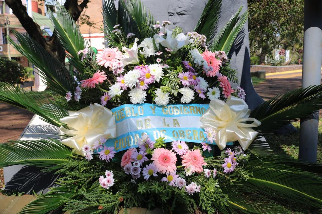 En el marco de los 135º aniversario del Fallecimiento de Domingo Faustino Sarmiento; el Intendente, Ad. Pablo Hassan acompañado de la Concejal María Helena Kudelko, supervisores Daniela González y Alfredo Antúnez, Presidente de la Comisión de Fiestas Cívicas y Populares Oberá, Patricia Lima y la reconocida docente “Kitty” Ponce, depositaron una ofrenda floral por el Día del Maestro, en el busto de quien es considerado el “Padre del Aula” en representación del Pueblo y el Gobierno de la Ciudad de Oberá.