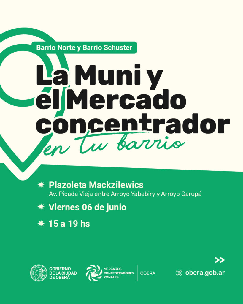La Muni y el Mercado Concentrador en tú barrio, se realizará en la plazoleta Mackzilewics el viernes 6 de junio, beneficiando a vecinos de barrio Schuster y Norte en el horario de 15 a 19 horas.
