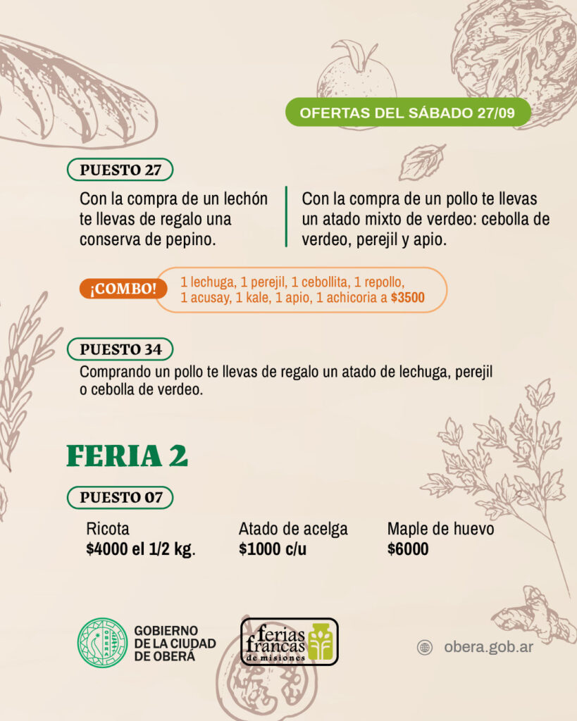 Este sábado 27 de septiembre, desde las 6 de la mañana, Oberá vuelve a latir al ritmo de sus Ferias Francas, un espacio que une la chacra con la ciudad, donde cada puesto es una historia y cada producto, un gesto de trabajo y dedicación.
