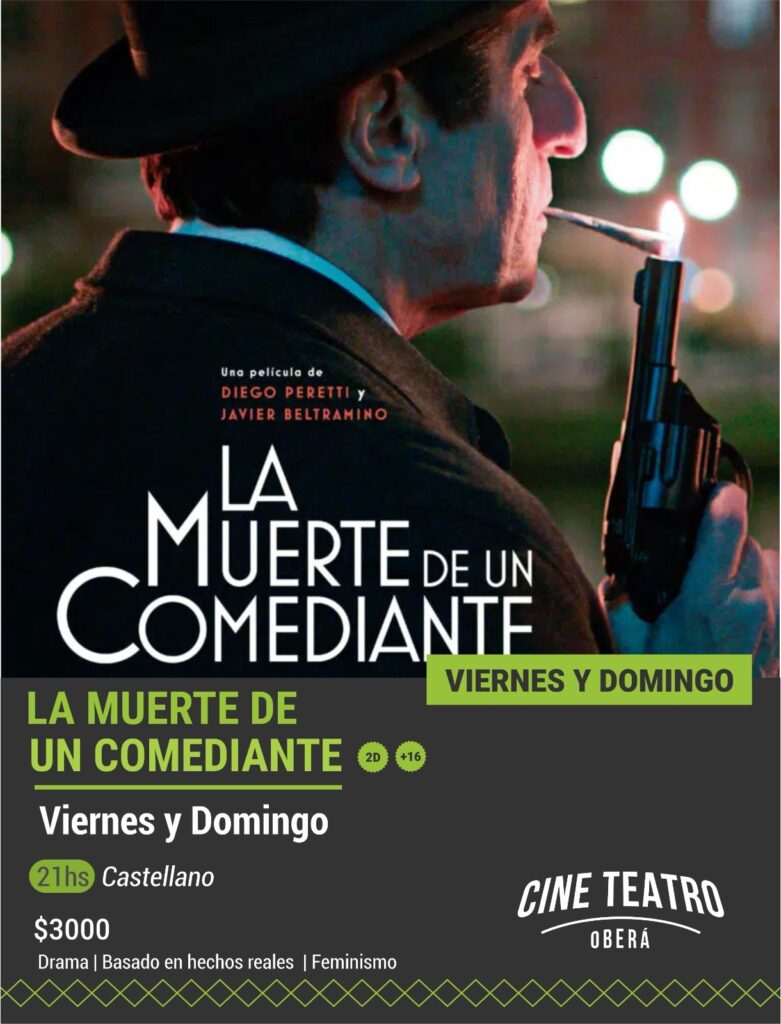 Completando la programación, se exhibe La Muerte de un Comediante, un drama para mayores de 16 que sigue a Juan Debré, un actor que, tras recibir un diagnóstico terminal, huye a Bruselas y termina involucrado en un conflicto inesperado. Sus funciones serán el viernes 5 y domingo 6, a las 21:00 hs, en castellano, con entradas a $3000.