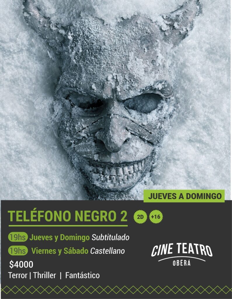 Para los amantes del terror, llega Teléfono Negro, un thriller fantástico que sigue el intento de venganza del Raptor desde la tumba, poniendo en peligro a Gwen y obligándola a enfrentar junto a su hermano a una fuerza más poderosa que la muerte. Las funciones serán a las 19:00 hs, subtitulada el jueves y domingo, y en castellano el viernes y sábado, con entradas a $4000.