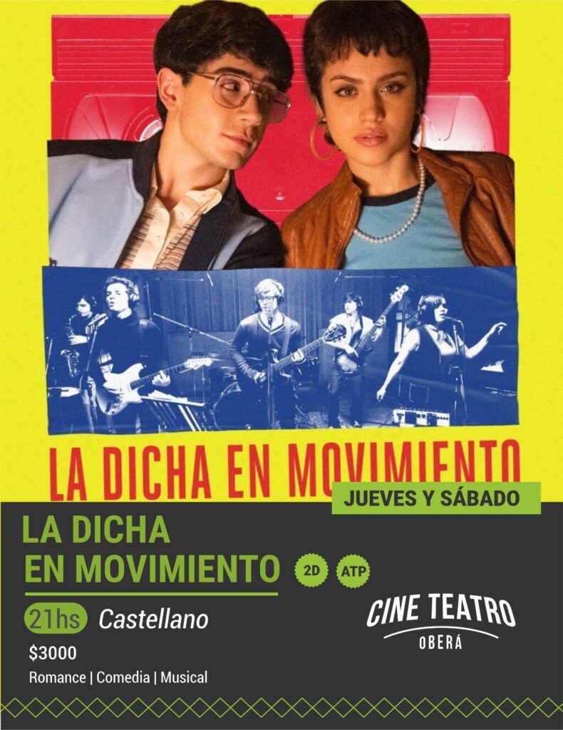 También se suma la propuesta nacional La Dicha en Movimiento, un romance musical apto para todo público que narra la historia de dos adolescentes que se enamoran durante la grabación del primer álbum de Los Twist. Se proyectará el jueves 4 y sábado 6, a las 21:00 hs, en castellano, con entradas a $3000.