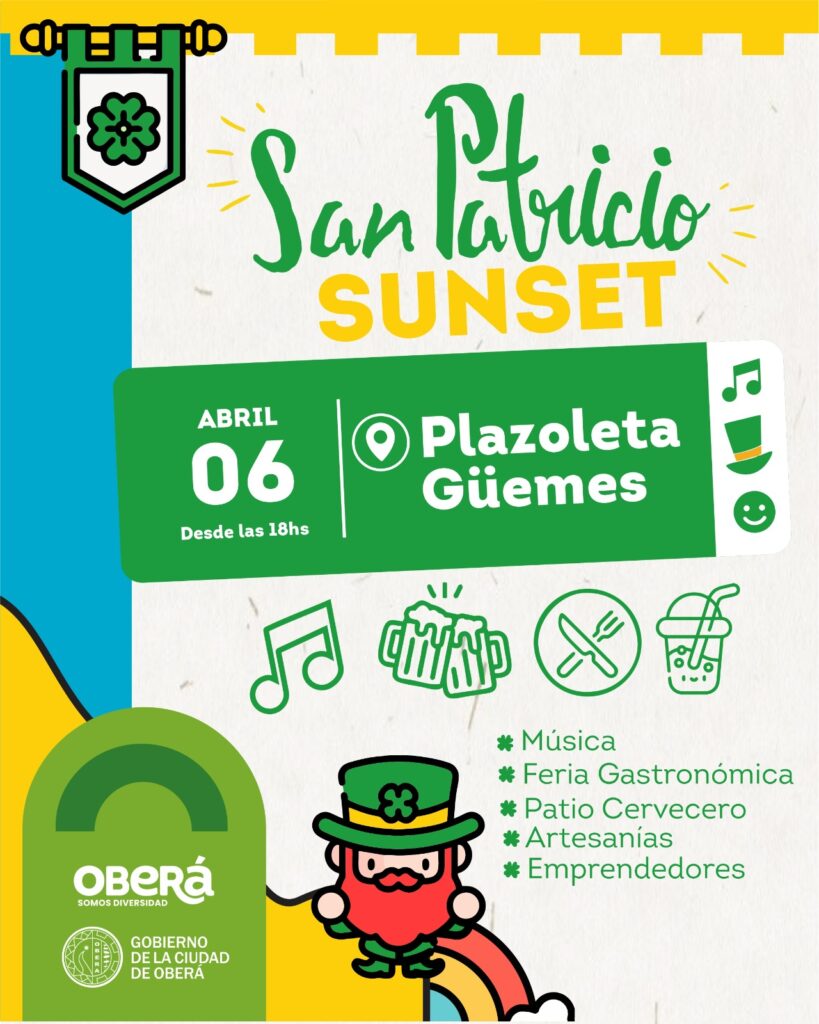 La Dirección de Turismo, Recreación y Cultura del Gobierno de la Ciudad de Oberá invita a vecinos y turistas a disfrutar de una nueva edición del clásico “Turismo Sunset”, esta vez en su versión especial de San Patricio.