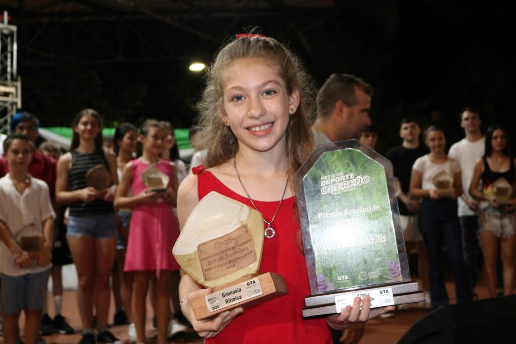 En tanto que la ganadora del “Premio Revelación” fue la pequeña Milena Valezka Bazila, quien con sus jóvenes 10 años tuvo un gran año en la Gimnasia Rítmica, su esfuerzo y dedicación la llevaron a integrar la Selección Argentina de la especialidad, compitiendo en un Sudamericano en Asunción Paraguay, donde accedió a las finales y se quedó con el 6° lugar en la final con aparatos; convirtiéndose así en la primera gimnasta misionera en integrar la Selección.