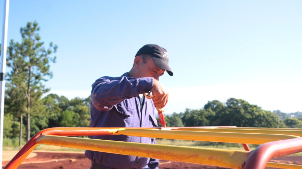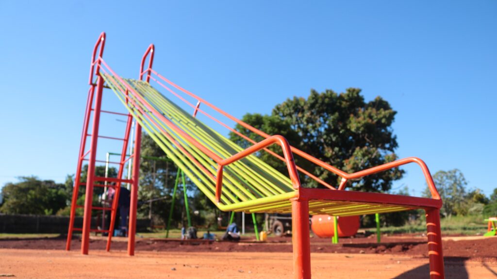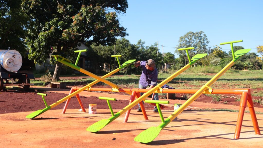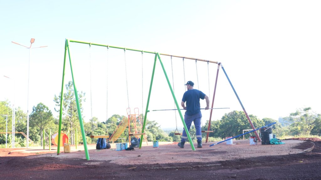 Los trabajos realizados son movimiento de suelo en el 70% del terreno de la plaza, dónde se está terminando la primera etapa con la construcción de sendero interno, construcción de 6 plateas circulares para juegos, además se realizaron la colocación de juegos que son hamacas, sube/baja.