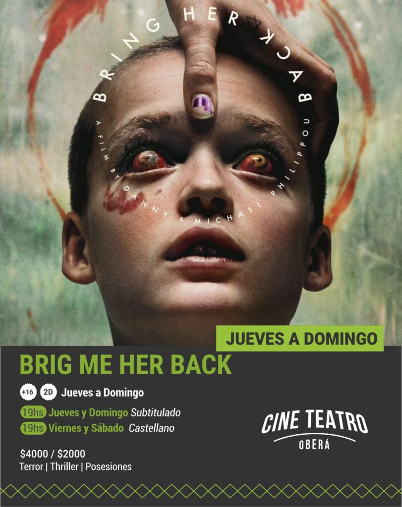 17:00 horas – jueves y domingo subtitulado – viernes y sábado castellano