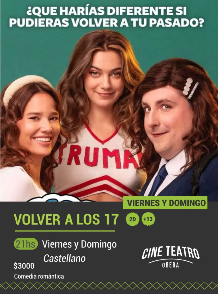 Por otro lado, Volver a los 17 se exhibirá el viernes 23 y el domingo 25 a las 21:00 horas. Esta comedia romántica con tintes fantásticos narra la historia de Pipe, un adulto que tiene la oportunidad de regresar a su adolescencia para corregir errores del pasado y reencontrarse con su primer amor, en un viaje cargado de humor, nostalgia y segundas oportunidades.