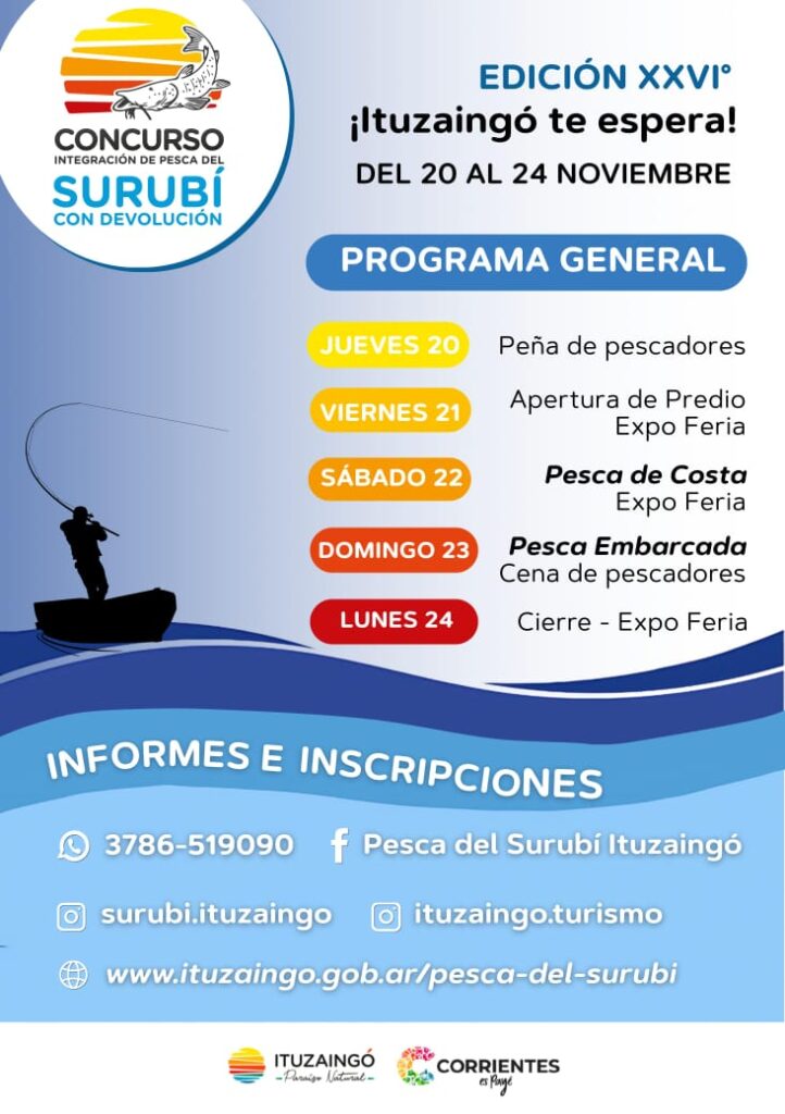 El próximo miércoles 5 de noviembre, en la Casa de La Cultura Municipal ubicada en calle gobernador Barreyro y Jujuy, a las 17 horas, se llevará adelante el lanzamiento del “Concurso Integración del Surubí Ituzaingó 2025”, invita al evento la Barra de Pesca “Pira Oberá”.