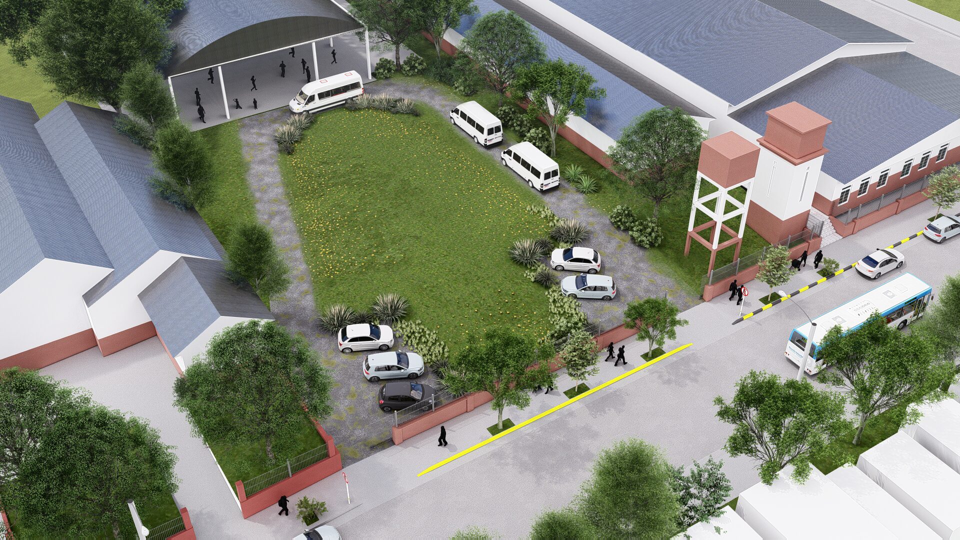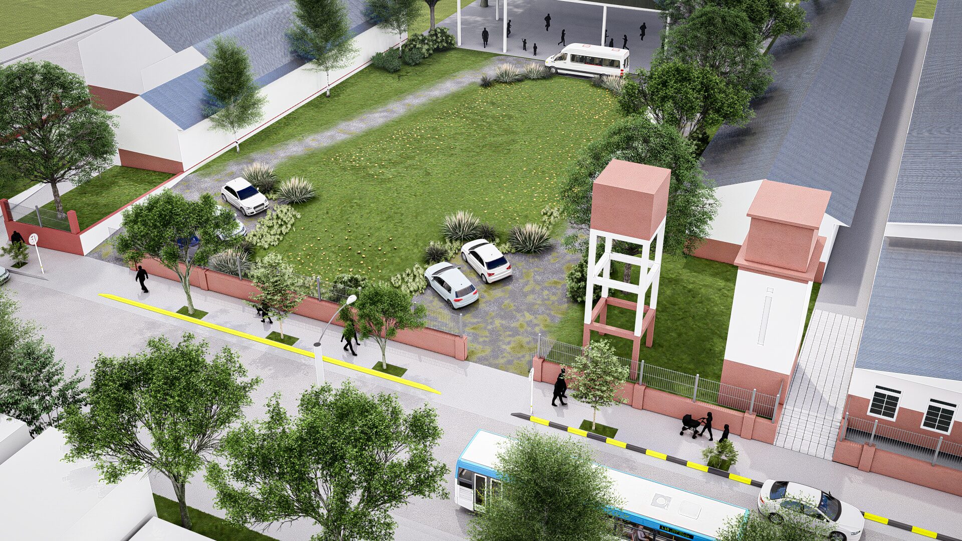 Ejecución de un nuevo sector de Acceso peatonal, Ingreso de Transporte Escolar con ascenso y descenso de alumnos, área de estacionamiento docente.