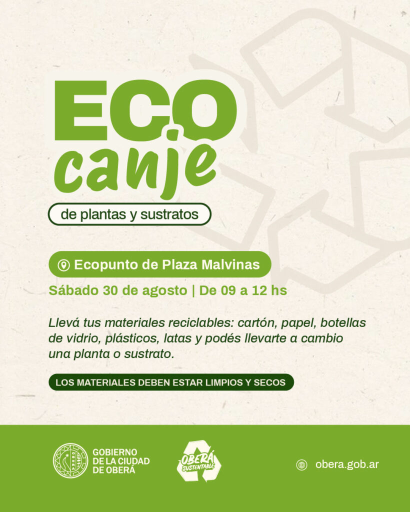 El Ecocanje forma parte del programa Oberá Sustentable, impulsado por el Gobierno de la Ciudad, que busca consolidar hábitos responsables y mejorar la calidad ambiental en la comunidad.