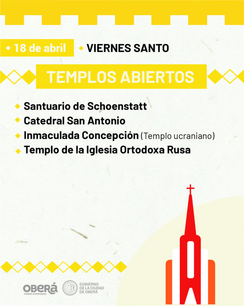 Te proponemos realizar un paseo autoguiado por los templos de la ciudad de Oberá que tendrán sus puertas abiertas: