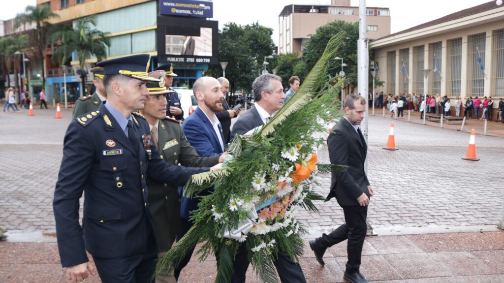 Uno de los momentos más conmovedores fue el coro de voces infantiles entonando el Himno Nacional, que resonó en el corazón de todos los presentes. Además, como parte de los homenajes, se llevó a cabo una significativa ofrenda floral en el Centro Cívico Manuel Belgrano, ubicado junto al busto del prócer argentino. Fue una jornada para celebrar y homenajear el símbolo patrio argentino y fomentar el sentido de identidad y pertenencia en la comunidad obereña.