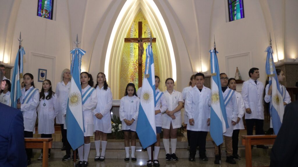 El jueves 20 de junio, la ciudad de Oberá se vistió de celeste y blanco en honor al Día de la Bandera Argentina. A pesar de las inclemencias climáticas, la comunidad se congregó en la catedral San Antonio para conmemorar el 204° aniversario del fallecimiento del General Manuel Belgrano, el creador de nuestra insignia patria.