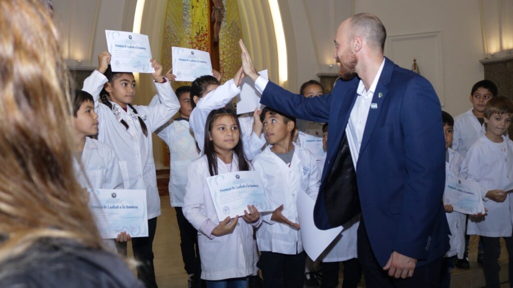 El acto tuvo una gran concurrencia, destacándose la participación de alumnos de 4to grado de diversas escuelas primarias, quienes, acompañados por sus familiares, prometieron lealtad a la bandera nacional, un momento lleno de emotividad y compromiso cívico. Además, estuvieron presentes el intendente Ab. Pablo Hassan, acompañado de funcionarios Municipales, concejales, Representantes del Poder Legislativo, las Fuerzas de Seguridad y miembros de diversas Colectividades.