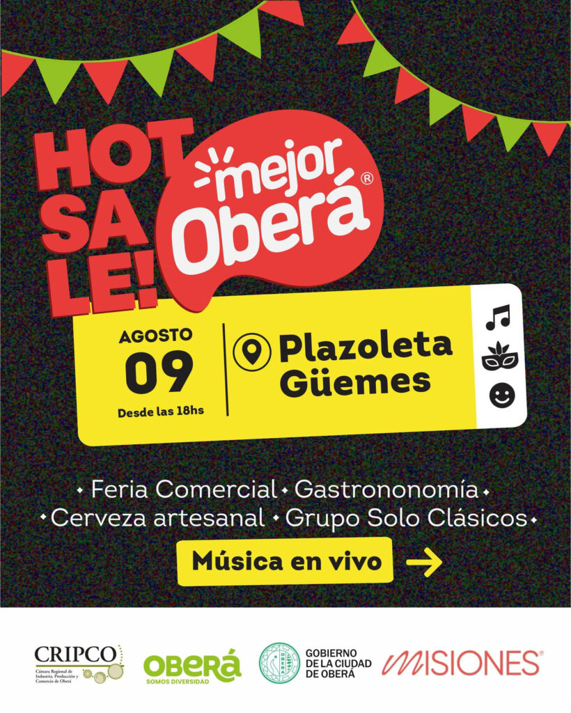 En este marco se suma la Peatonal Cultural «Hot Sale Mejor Oberá». El evento, que promete ser una cita imperdible para toda la familia obereña y de turistas que eligen nuestra ciudad, se llevará a cabo en el multiespacio de la emblemática Plazoleta Güemes.