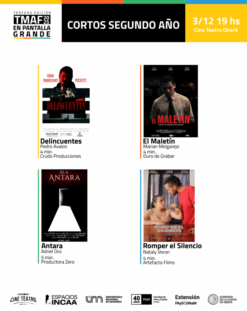 El Cine Teatro Oberá – Espacio INCAA será sede de la proyección de los Cortos Finales realizados por estudiantes de 2.º y 3.º año de la carrera de Medios Audiovisuales y Fotografía de la FAyD – UNaM.