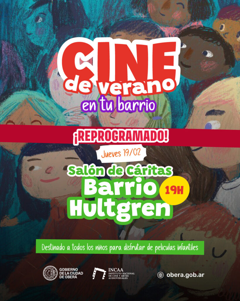 La proyección del séptimo arte en barrio Hultgren que estaba prevista para hoy, se reprogramó para el jueves 19 en el salón de Cáritas a las 19 horas.
