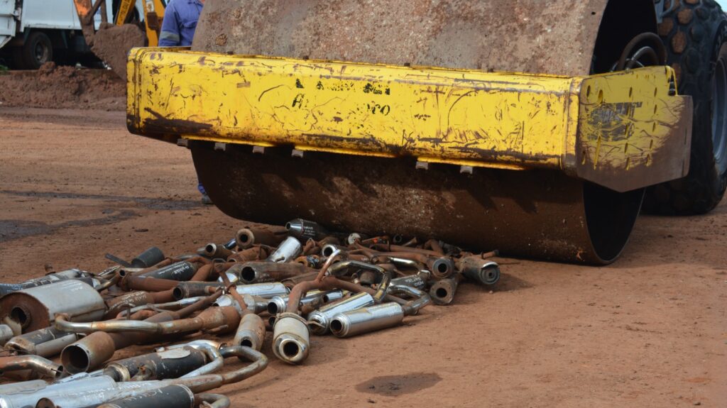 Se llevó a cabo la compactación y destrucción de caños de escape decomisados de los motovehículos en los diferentes operativos que se realizaron en la Ciudad de Oberá.