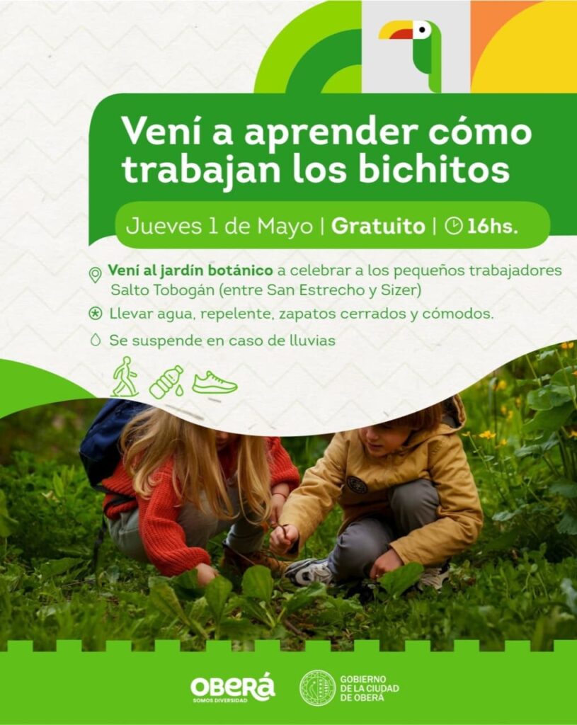 Las familias tendrán la oportunidad de observar de cerca el comportamiento de mariquitas, abejas, mariposas, hormigas, orugas y muchos otros “bichitos misioneros”, aprendiendo sobre sus ciclos de vida y como ayudan a las flores de nuestra ciudad. Será una tarde para despertar la curiosidad, maravillarse con la biodiversidad y comprender la importancia de cada criatura en el equilibrio natural.