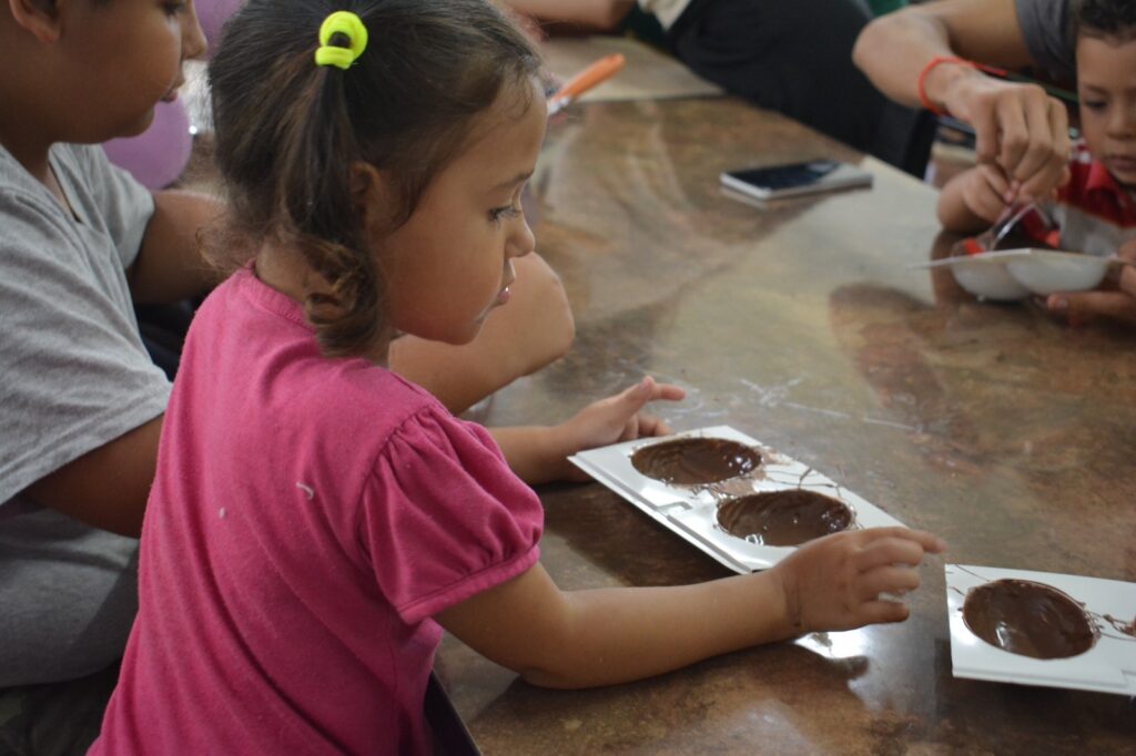 Es una propuesta realizada por la Subsecretaría de Primera Infancia a cargo de Paula Schapavaloff, trabajando con niños del Neni del barrio en conjunto con el EPI, para hacer huevos de chocolate entre los niños y los padres.
