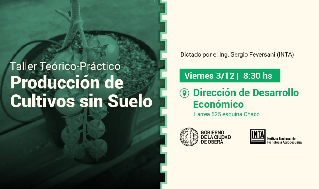 El Gobierno de la ciudad de Oberá invita a los vecinos a participar del Taller Teórico-Práctico sobre Producción de Cultivos sin Suelo (Sustratos), una oportunidad ideal para aprender a cultivar alimentos frescos y saludables en espacios pequeños, como departamentos o terrazas.