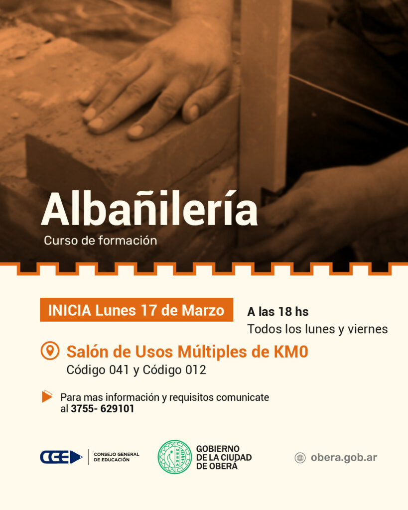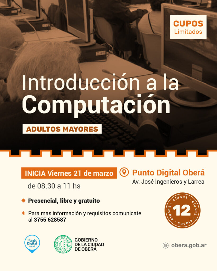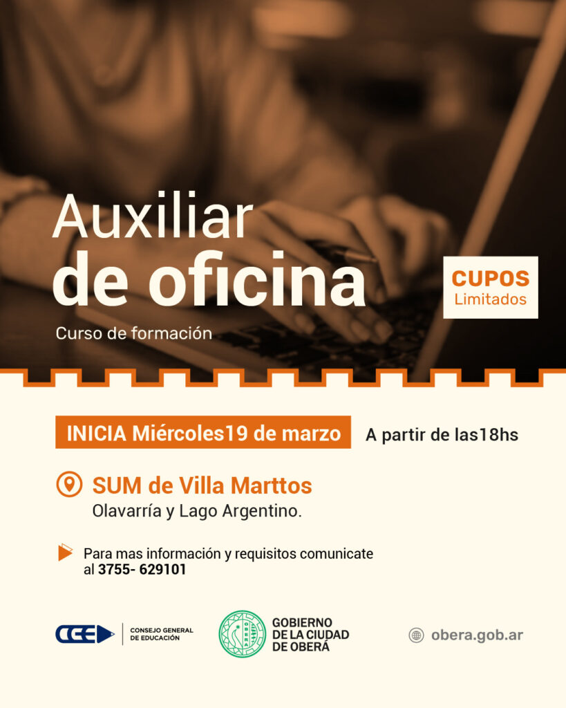 El Gobierno de la Ciudad de Oberá, a través del área de Capacitación, organiza una serie de talleres gratuitos dirigidos a la comunidad. Estos cursos están destinados a personas mayores de 18 años y cubren diversas áreas de formación, desde oficios hasta nuevas tecnologías.