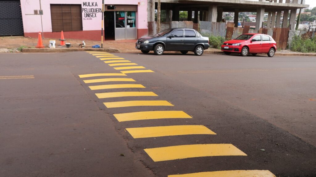 Operarios municipales del Gobierno de la Ciudad de Oberá sigue adelante con las tareas de demarcación vial. Se realizan tareas de señalización horizontal en lomos de burro, como así también señalización de sendas peatonales y cordones en esquinas. El objetivo es el de mejorar visibilidad de los elementos y generar mayor seguridad vial.