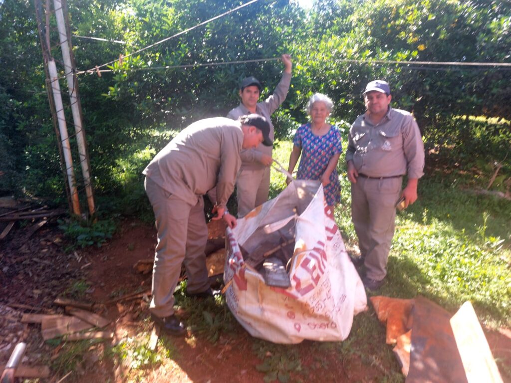 En algunos casos, cuando se trata de adultos mayores o personas con discapacidad, los equipos colaboran en la recolección de objetos pesados como chatarras o neumáticos. Este último es uno de los principales focos de reproducción del Aedes aegypti.